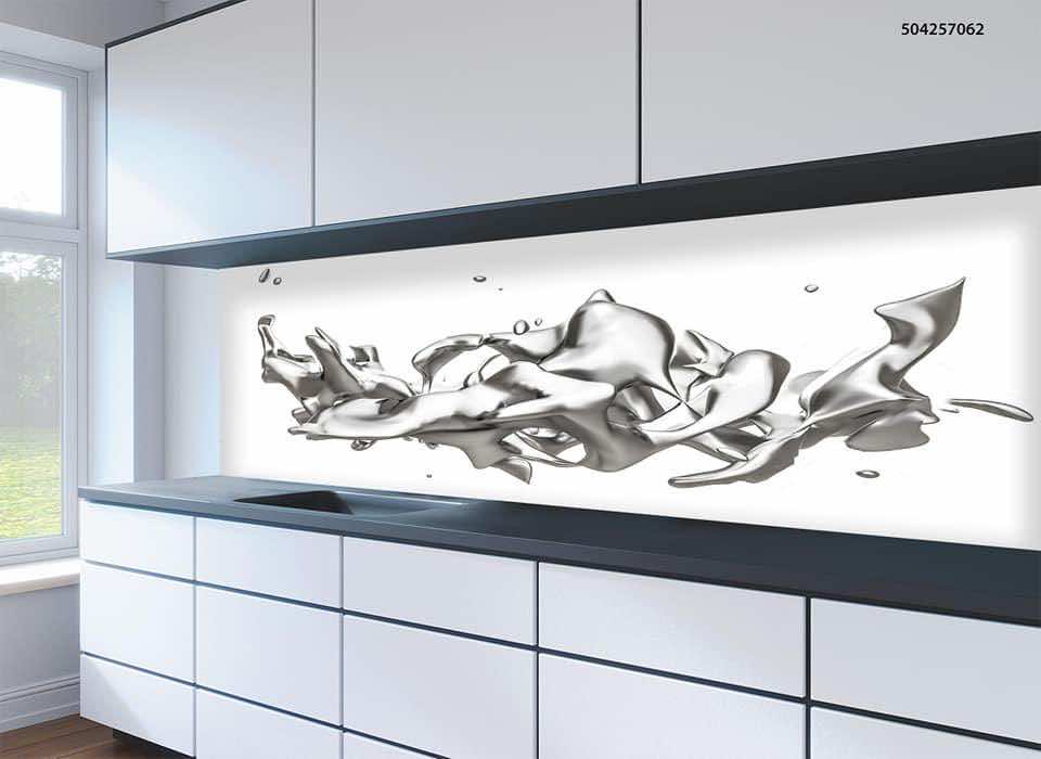 Kitchen Splashbacks White Colour with mirror lines .Luxury design splashback ideas.