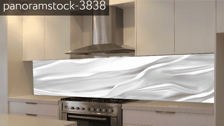 Kitchen Splashbacks White Colour with mirror lines .Luxury design splashback ideas.