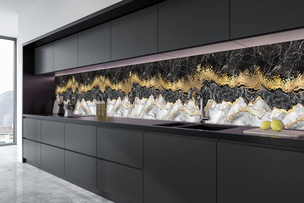 White and grey marble splashback glass in Ireland